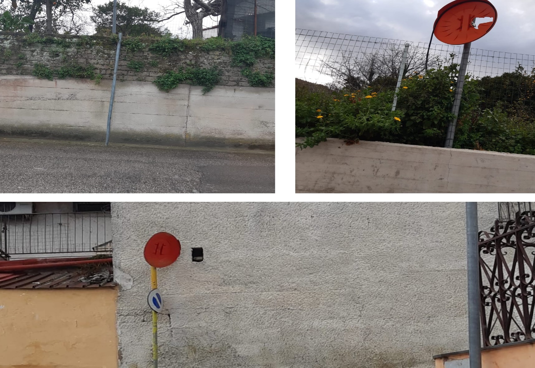 Le attrezzature, complementari alla segnaletica stradale, sono state tra le prime installazioni effettuate, per la sicurezza degli utenti, nei punti considerati a rischio. Nello specifico, tre specchi sono stati ridotti in frantumi, in Via Monsignor Pascarella, in Via Cervino e in Via Pietre Chiatte. Rimosso, invece, lo specchio situato in Via Casiero Voccola, dove è stato ritrovato il palo di sostegno lievemente divelto. Per questo episodio, si tratterebbe di furto o della rottura causata dal transito di un mezzo pesante, con la conseguente raccolta dei residui per non lasciare tracce.