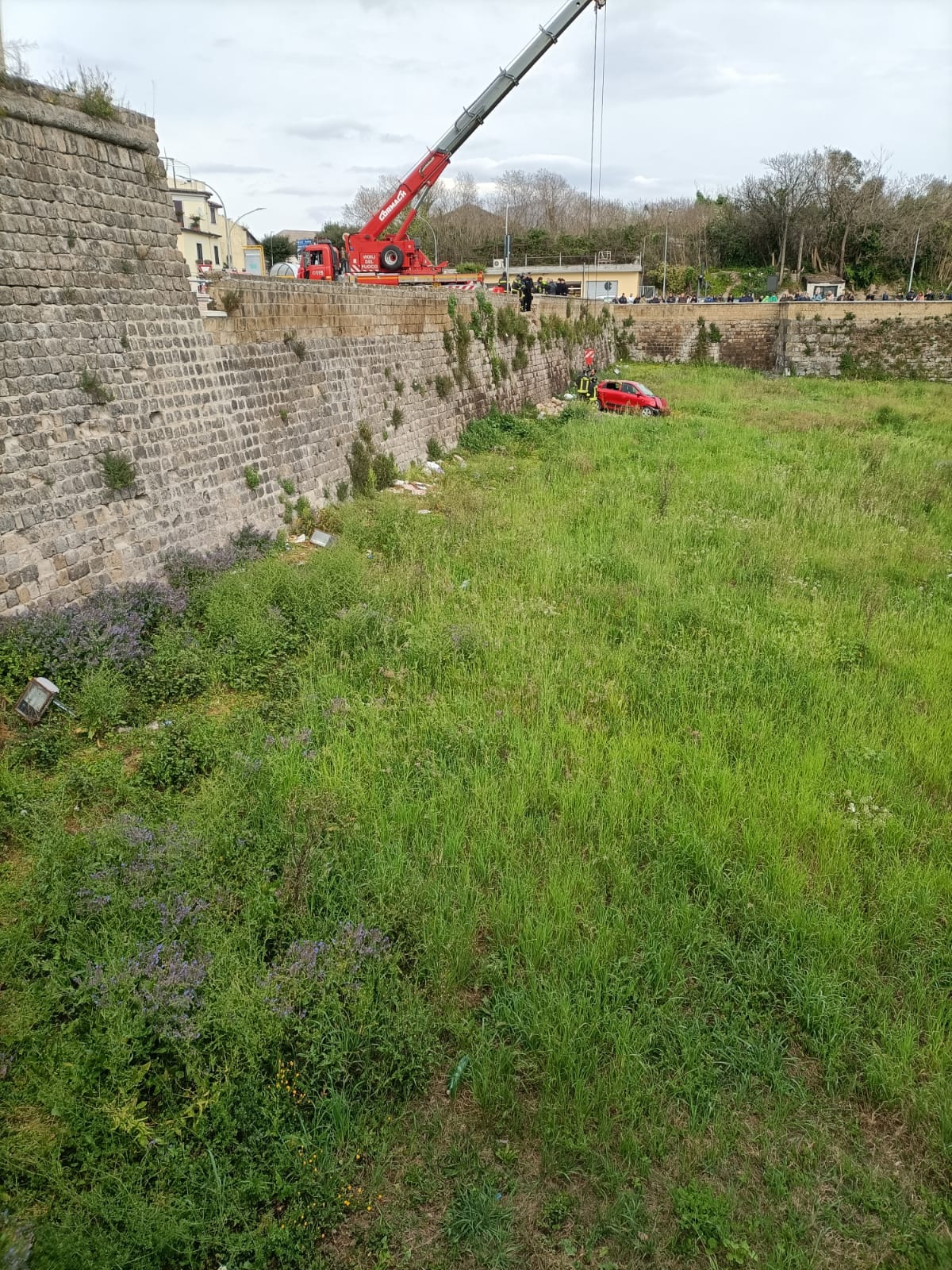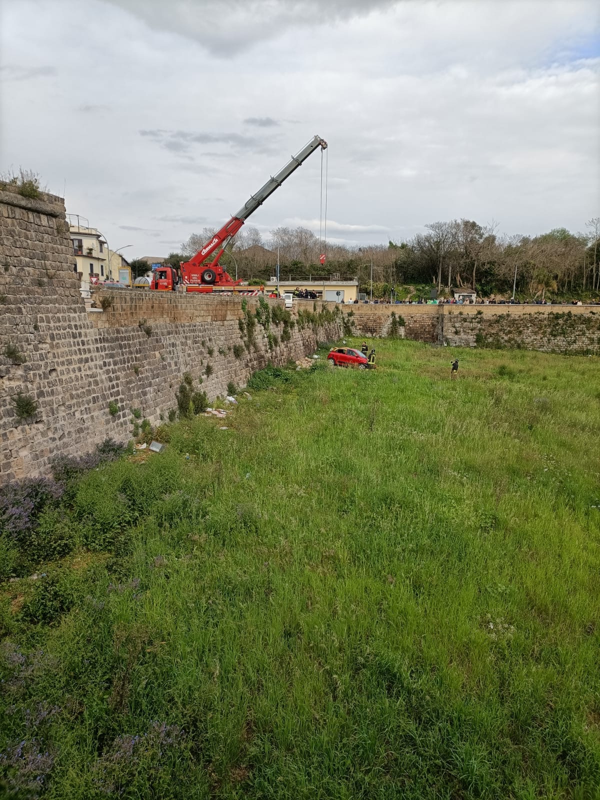 Questo pomeriggio verso le ore 16:00 una squadra del Comando provinciale dei Vigili del Fuoco di Caserta proveniente dalla sede centrale del Comando è intervenuta in via “Largo porta Napoli” nel comune di Capua per un incidente stradale con una sola autovettura coinvolta. Immediatamente giunti sul posto i Vigili del Fuoco hanno immediatamente soccorso un uomo di circa 75 anni che, per cause da accertare, alla guida della sua auto ha sfondato un muretto di un parcheggio finendo la sua corsa nei fossati del castello di Carlo V dopo un volo di circa 5 metri. L’uomo, una volta recuperato dai Vigili del Fuoco, è stato affidato alle cure del 118 di Capua per essere poi trasferito in ospedale a Caserta. Sul posto per le operazioni di soccorso e recupero dell’autovettura è intervenuta anche un’autogrú proveniente dalla sede centrale del Comando.
