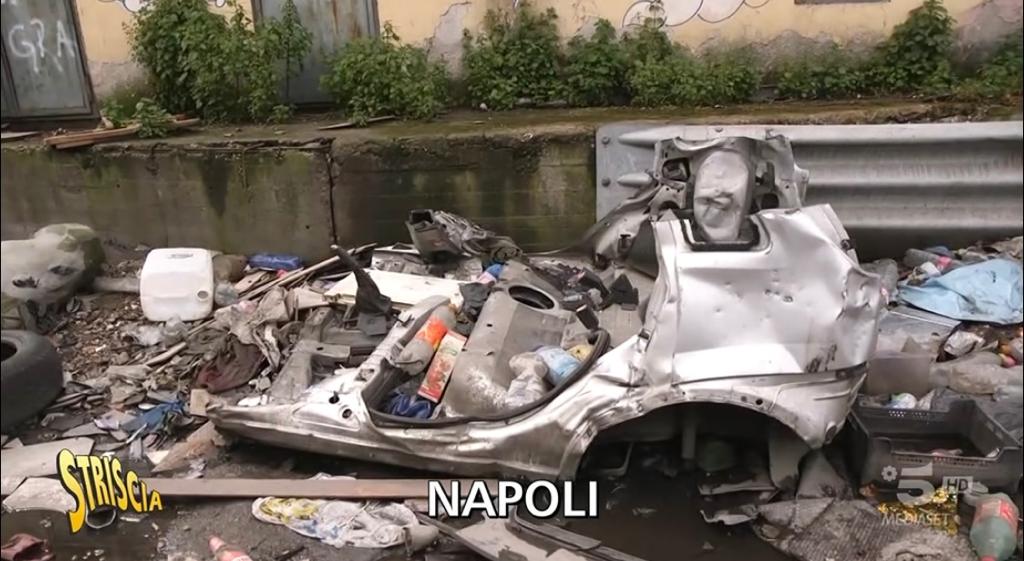 Luca Abete in un servizio andato in onda ieri sera all’interno del tg satirico Striscia La Notizia ha guidato i telespettatori in un tour dell’orrore nella Terra dei Fuochi: a Villa Literno, Napoli, Caivano sono decine i telai resi irriconoscibili e poi depositati abusivamente lungo strade di campagna, o nei pressi di arterie molto trafficate.