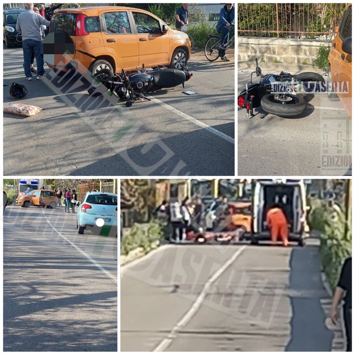 Arienzo. Incidente in via Maddalena, arteria perpendicolare che sbuca sulla Nazionale Appia. Nei pressi della curva, non lontano dall’autolavaggio c’è stata una collisione tra una motocicletta ed una Fiata Panda di colore arancione.