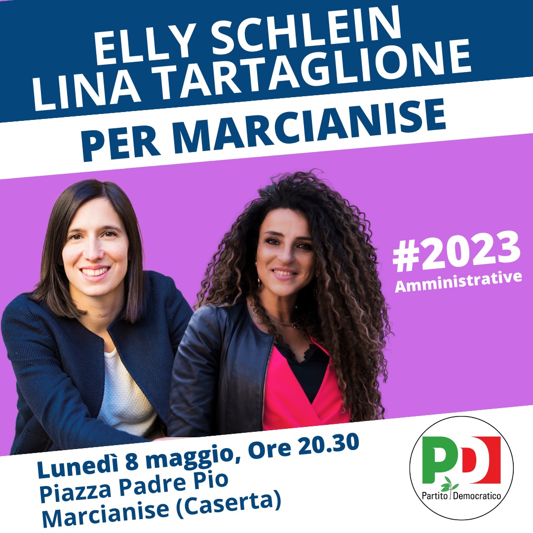 Marcianise. “Sono fiera ed orgogliosa dell’arrivo di Elly Schlein a Marcianise”ha dichiarato la candidata Lina Tartaglione; l’arrivo della segretaria nazionale del Partito Democratico a sostegno di Tartaglione e la sua lista di Centro-sinistra, è infatti previsto per il prossimo 8 maggio, in Piazza Padre Pio, alle 20.30.