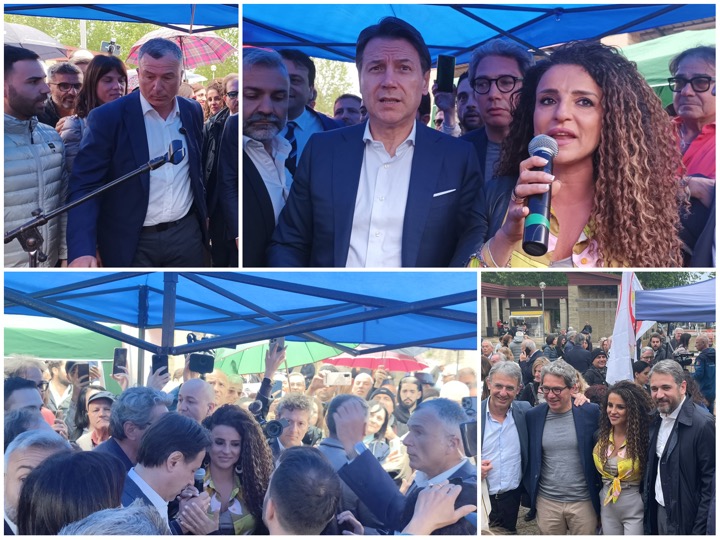 Marcianise. Un evento sentito, unico e soprattutto con un’ampia partecipazione da parte dei cittadini di Marcianise: piazza Padre Pio ha infatti visto questo pomeriggio, 8 maggio,  una folla gremita ed entusiasta per l’arrivo dell’ex premier Giuseppe Conte, presidente del Movimento Cinque Stelle a sostegno della candidata sindaca Lina Tartaglione.