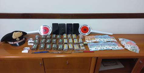Lo stupefacente recuperato, per un totale di circa 3 Kg, oltre a 4 smartphone e vario materiale per il confezionamento delle dosi, è stato sottoposto a sequestro.