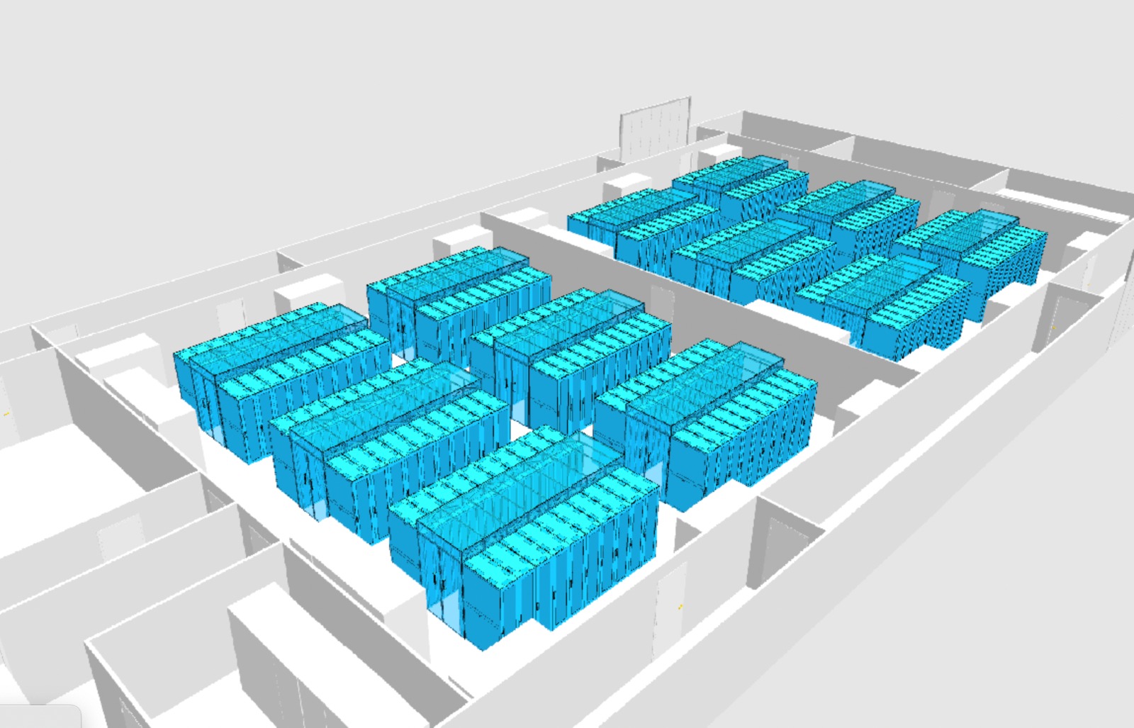 L’alimentazione della struttura è completamente ridondata, con quadri e gruppi di continuità duplicati e separati da pareti REI120, garantendo due linee di alimentazione indipendenti per le sale dati. L’impianto di raffreddamento è basato su sistemi ad acqua ad alta efficienza, con tecnologia di “free cooling” che sfrutta l’aria esterna per ridurre il consumo di energia elettrica. Anche questi sistemi sono ridondati e dotati di doppia alimentazione.