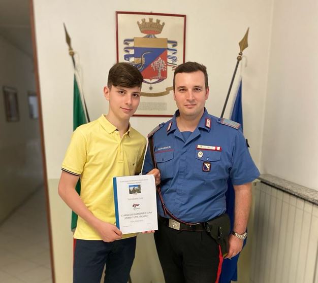 Nella mattinata odierna lo studente ha donato al C.te di Stazione la sua tesina. Nell’occasione al ragazzo sono stati consegnati alcuni gadget istituzionali.