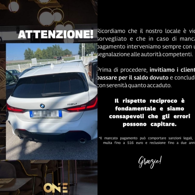 “La nostra priorità è offrire un’esperienza piacevole a tutti i nostri clienti, ma non possiamo trascurare il rispetto delle leggi che disciplinano la nostra attività! Vi invitiamo a ritornare per il saldo.”