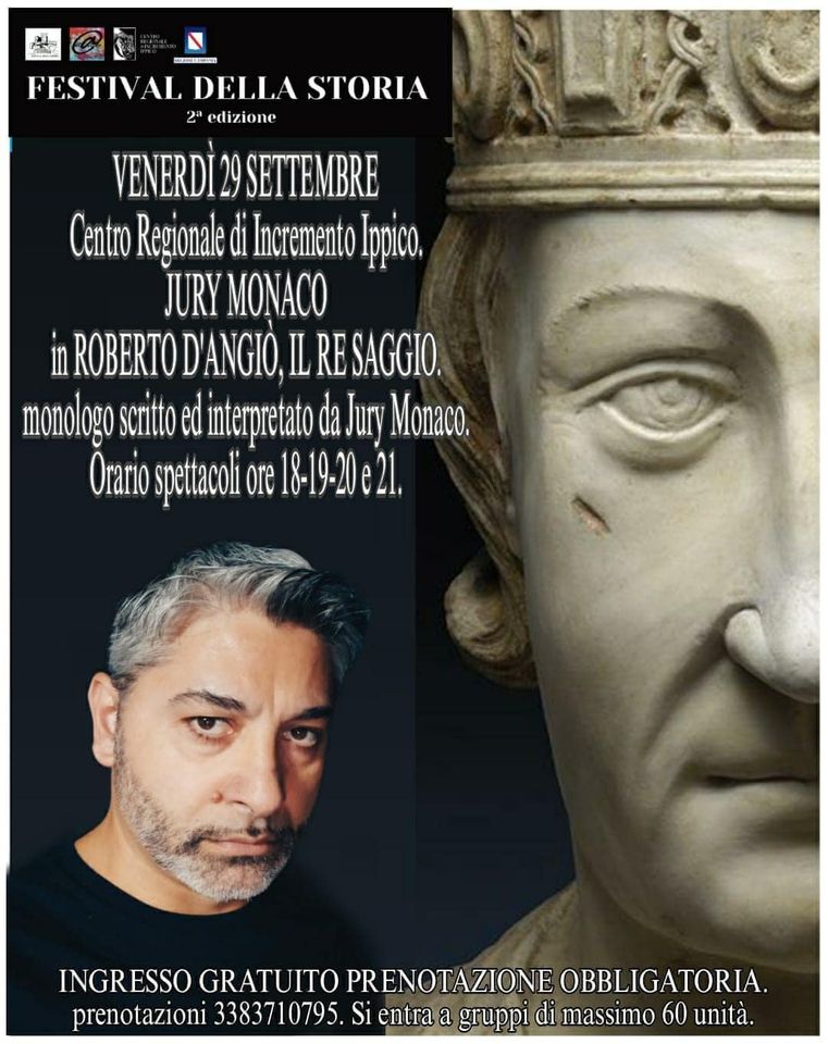 In particolare, il 29 settembre prossimo sarà rappresentato il monologo “Roberto d’Angiò, il re saggio” scritto e recitato dall’attore Jury Monaco che racconterà del personaggio storico che fu re di Napoli e che nacque proprio a santa Maria Capua Vetere nel castello di via d’Angiò ove ora è allogato il museo archeologico dell’antica Capua. Lo spettacolo, completamente gratuito, si svolgerà con inizio alle ore 18, 19, 20 e 21 con prenotazione obbligatoria ed in gruppi di non più di sessanta persone.