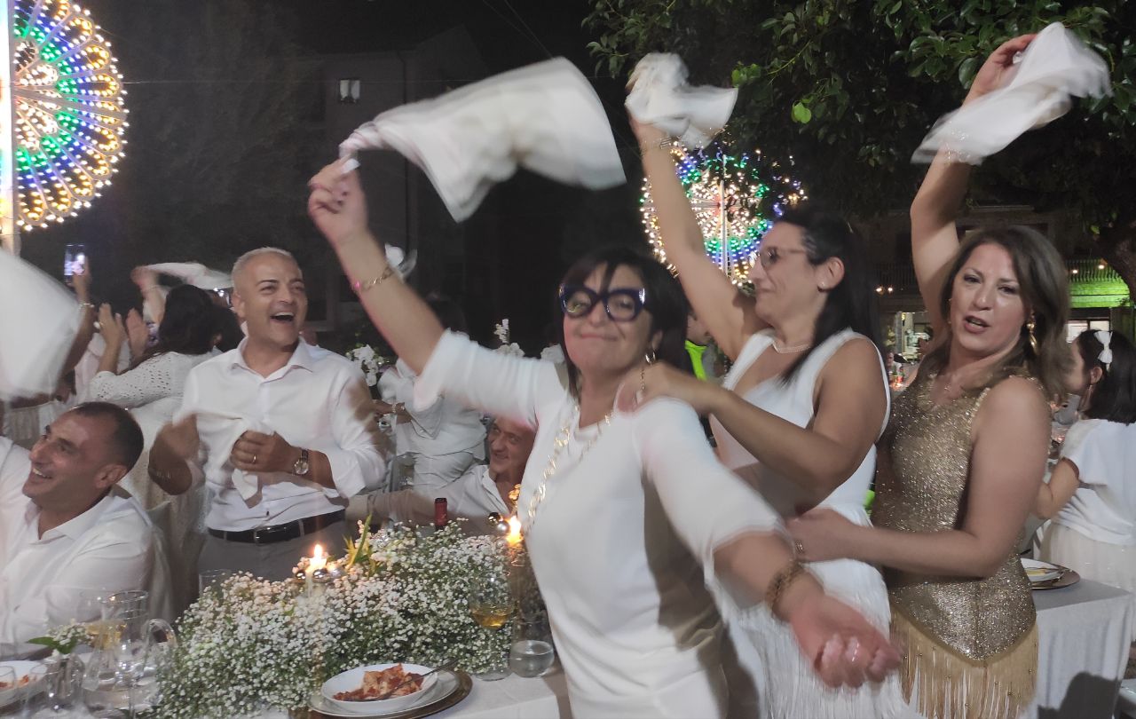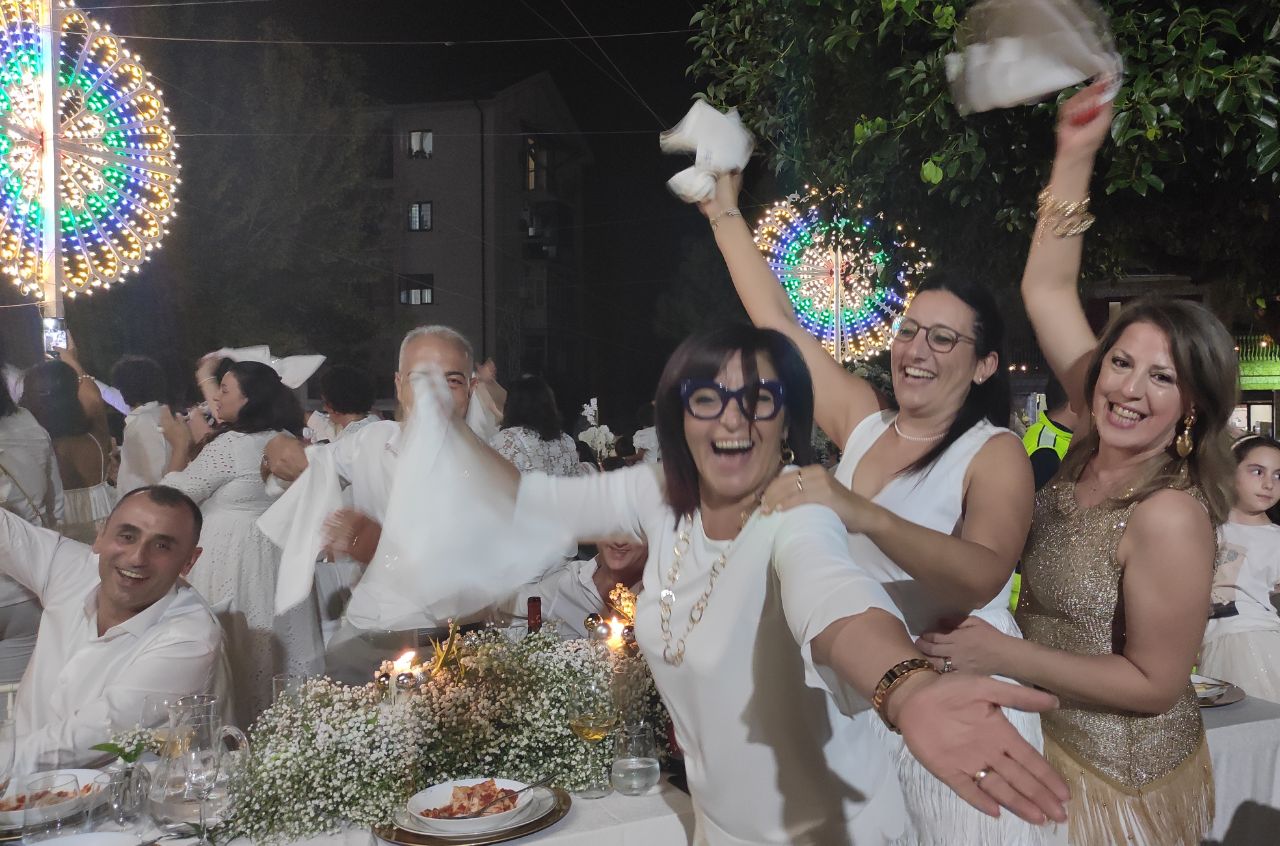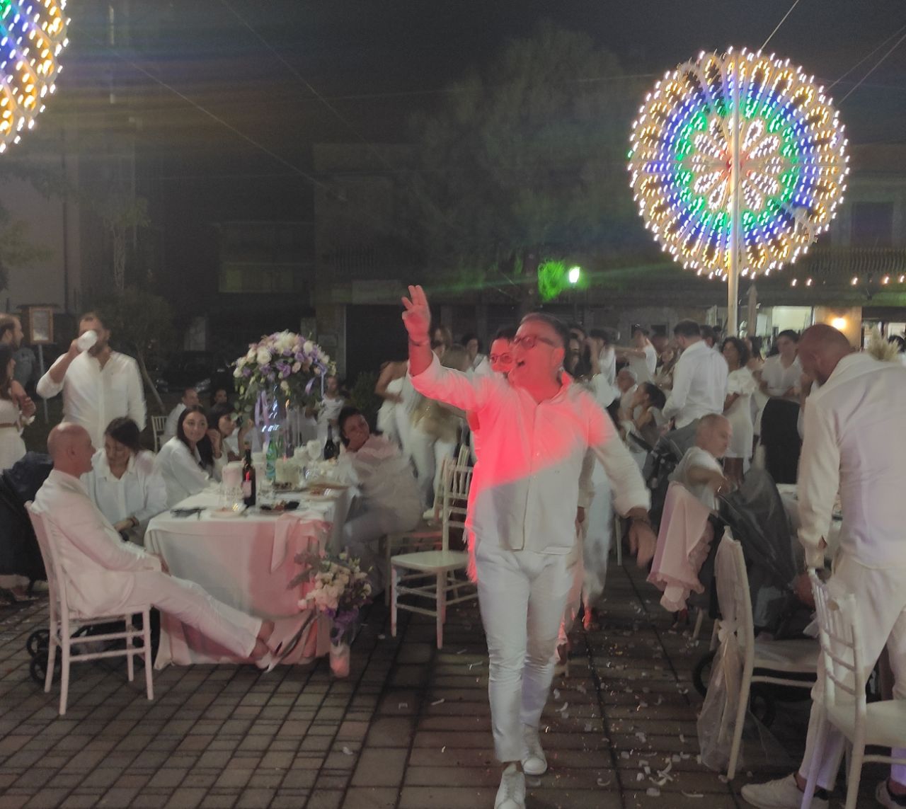 Nello spazio antistante l’area verde è stata organizzata la White Dinner, cena in bianco mutuata da un’idea nata nel 1988 a Parigi e diventata ormai una delle serate più cool in giro per l’Europa. Un progetto ambizioso che però si è trasformato in un grande successo, grazie alla caparbietà dell’associazione San Felice al Centro, guidata dalla responsabile Mena Forcella, che grazie ad un lavoro di equipe ha portato a tavola 130 invitati, tutti rigorosamente vestiti di bianco, riscuotendo tanti consensi anche dai tanti passanti che si aggiravano per la piazza e che hanno gradito la serata speciale.