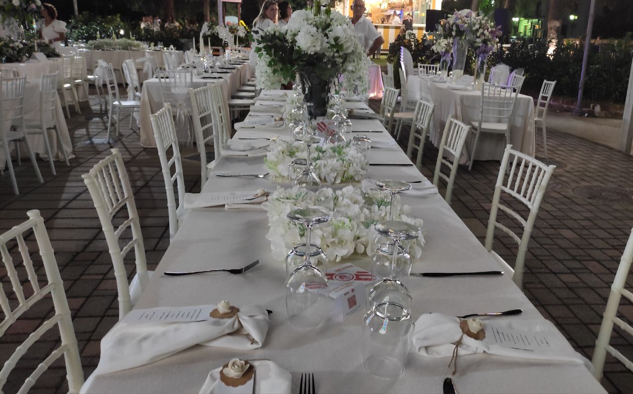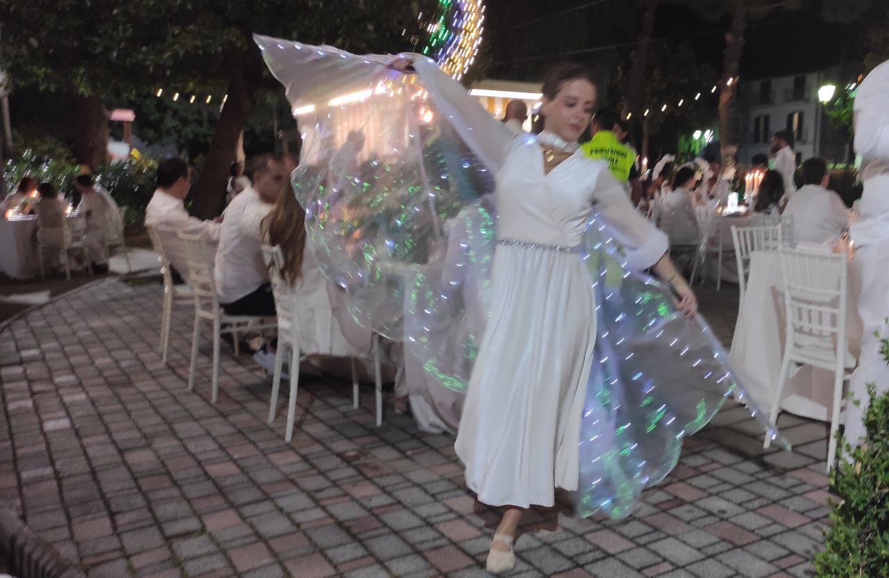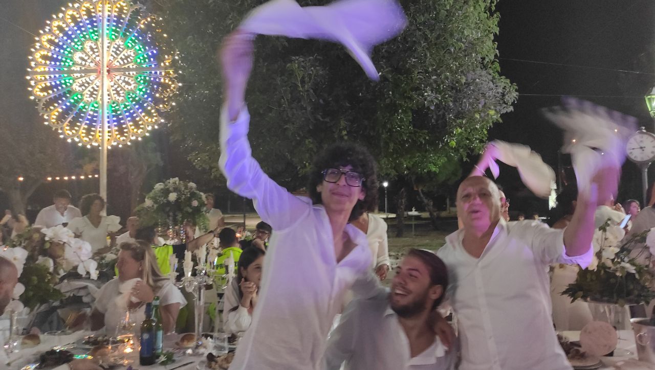 Nello spazio antistante l’area verde è stata organizzata la White Dinner, cena in bianco mutuata da un’idea nata nel 1988 a Parigi e diventata ormai una delle serate più cool in giro per l’Europa. Un progetto ambizioso che però si è trasformato in un grande successo, grazie alla caparbietà dell’associazione San Felice al Centro, guidata dalla responsabile Mena Forcella, che grazie ad un lavoro di equipe ha portato a tavola 130 invitati, tutti rigorosamente vestiti di bianco, riscuotendo tanti consensi anche dai tanti passanti che si aggiravano per la piazza e che hanno gradito la serata speciale.