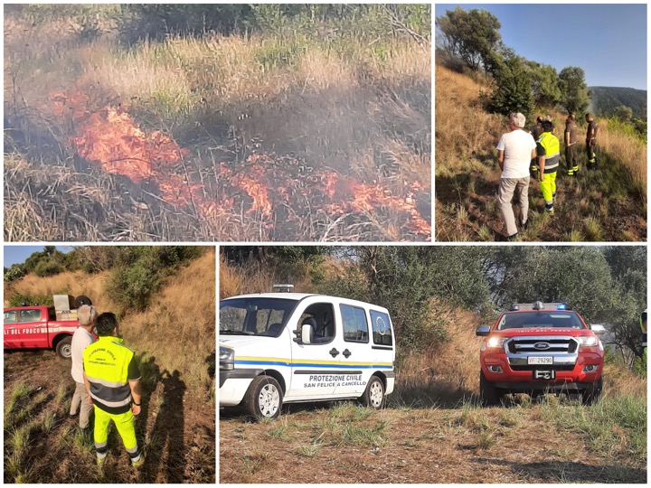 San Felice a Cancello. Giornata intensa per la Protezione civile di San Felice a Cancello che ha dovuto fare fronte ad un maxi incendio di sterpaglie nella strada periferica, via Monticello Volpone.