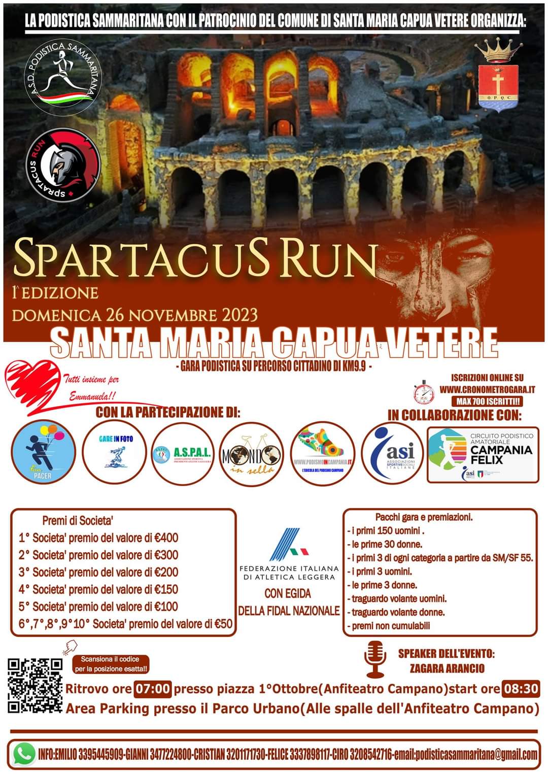 SANTA MARIA CAPUA VETERE. Correre nella storia. E’ questa l’esperienza che proveranno gli appassionati e i corridori che si cimenteranno il prossimo 26 novembre nella Spartacus Run.