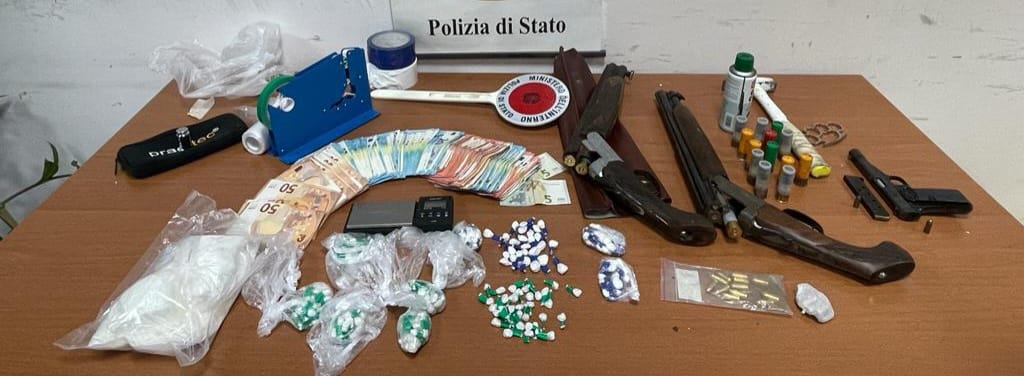 L’uomo è stato rintracciato nei pressi dell’abitazione di un complice, un 50enne sammaritano, presso la cui residenza sono stati rinvenuti e sequestrati 2 fucili calibro 12 a canne mozze, 1 pistola semiautomatica, 40 cartucce di vario calibro, 1 chilo di cocaina, una parte della quale giù suddivisa in dosi e 4500 Euro in contanti.
