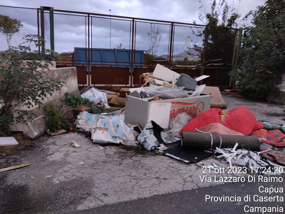 CAPUA. Nella giornata di ieri durante un vedettaggio ambientale effettuato da alcuni volontari dell’associazione D.E.A e Osservatori Civici Campania ,nuovamente in via Lazzaro di Raimo veniva riscontrata la presenza di nuovi materiali pericolosi e non , illecitamente abbandonati alle spalle della calcestruzzi .
