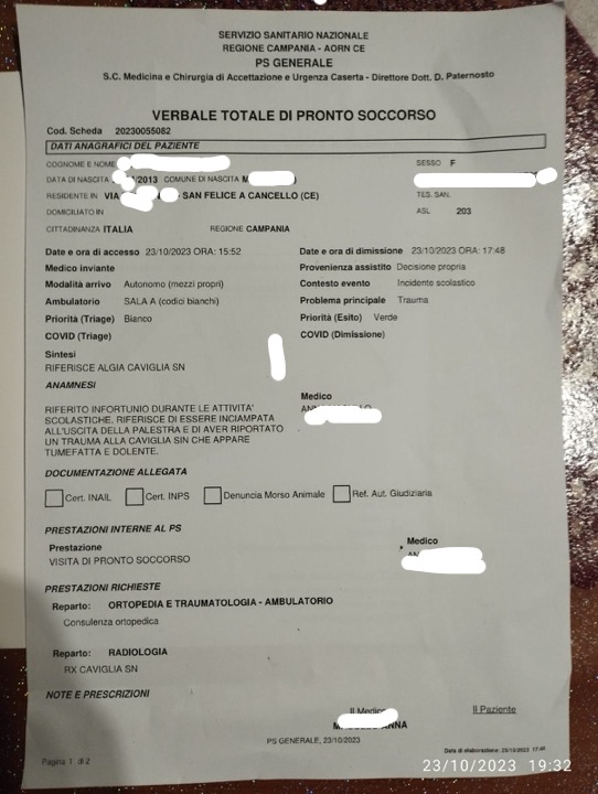Qui le hanno immobilizzato la gamba con un gesso provvisorio e ci hanno consigliato di recarci in un’altra struttura, il Santobono per ulteriori accertamenti.