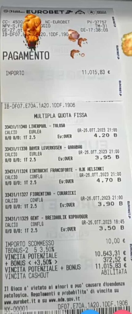 Ha puntato su 5 partite con la scommessa over 2,5 primo tempo, con quote dal 3.5 al 4.7.