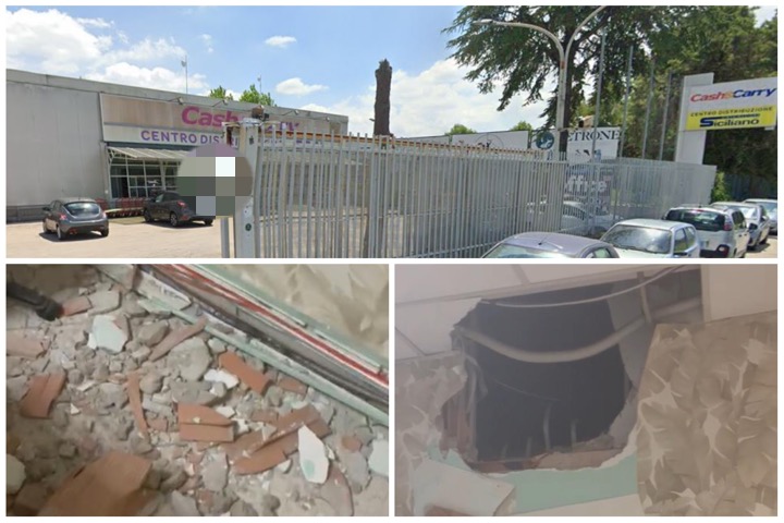 Un’azione dirompente ed efficace che ha permesso loro di realizzare questo squarcio nel quale calarsi per fare irruzione negli uffici e puntare alla cassaforte.