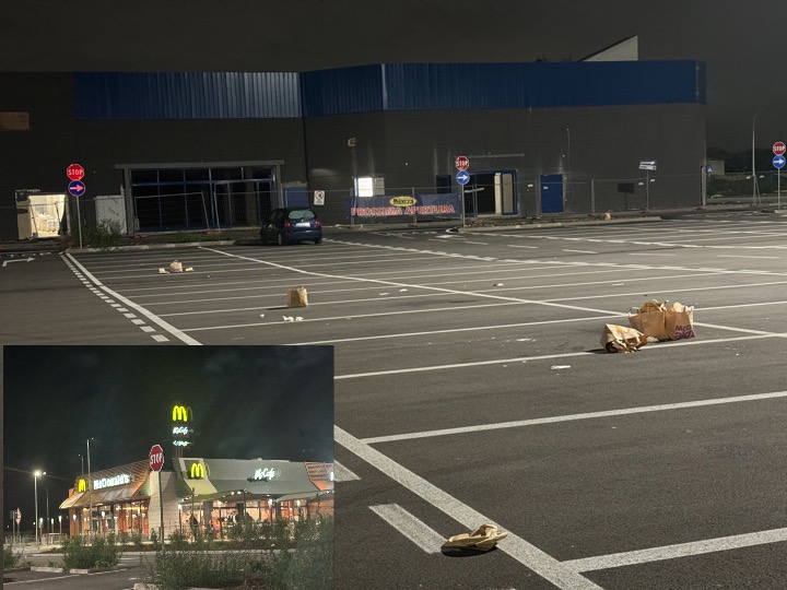 E’ pur vero che è un parcheggio grande, di sera semideserto e ne approfittano, però questa nuova generazione se ne infischia delle regole, non hanno nemmeno la forza di cercare un cestino, non riescono a percorrere nemmeno un metro. Un appello lo facciamo anche al concessionario che sta eseguendo i lavori per i prossimi store in arrivo, installiamo dei cestini grandi di fronte al fast food, almeno gli diamo un’opzione in più a questi incivili. IL VIDEO