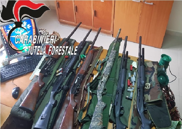 Sono stati sequestrati complessivamente quattro fucili da caccia e relativi munizionamenti, tre richiami acustici elettromagnetici vietati riproducenti il verso del tordo, nr. 11 esemplari di fauna abbattuta (Tordi bottacci), carcasse distrutte mediante interramento, deferendo i predetti in stato di libertà per il reato di esercizio della caccia con l’ausilio di richiami vietati, come previsto dalle Norme per la protezione della fauna selvatica omeoterma e per il prelievo venatorio.