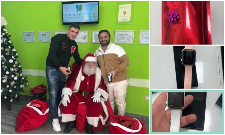 Foto con Babbo Natale e smartwatch in regalo ai piccoli pazienti studio dentistico Pennacchio/Ricciardi