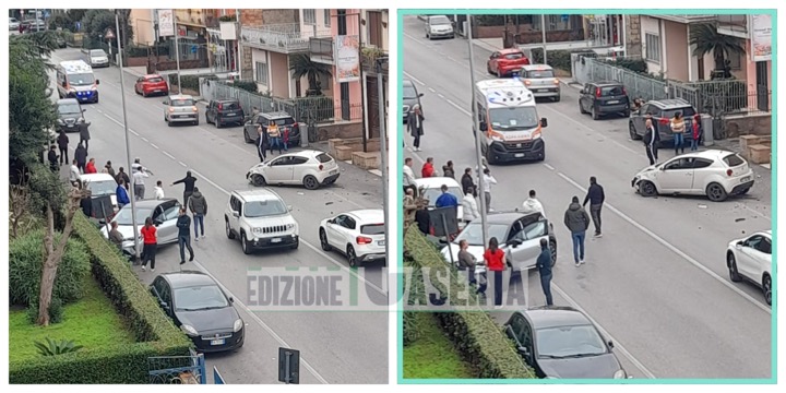 Santa Maria a Vico. Terribile incidente sulla Nazionale, incrocio con via Puoti. Coinvolte una Alfa Mito e una Renault Captur.