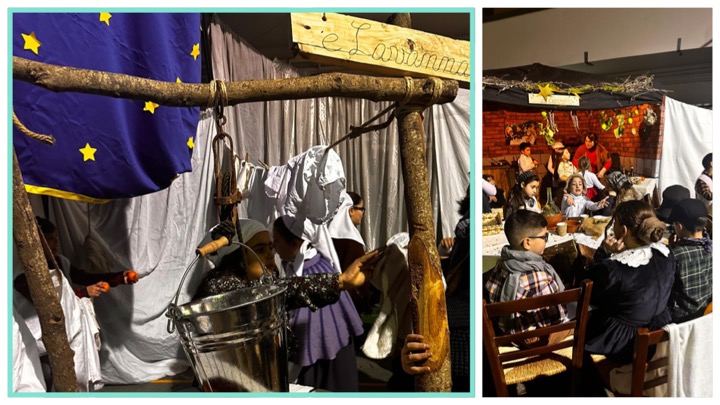Nell’atrio e nella palestra della scuola media sono state predisposte grotte e capanne all’interno delle quali gli studenti con dei costumi caratteristici sono entrati in scena riproducendo l’antica tradizione cristiana con la nascita di Gesù. A suscitare stupore è stata la realisticità degli antichi mestieri messi in scena: il lustrascarpe, la lavandaia, i pizzaioli, i macellai, i falegnami, le sarte, i fruttivendoli e tanti altri.