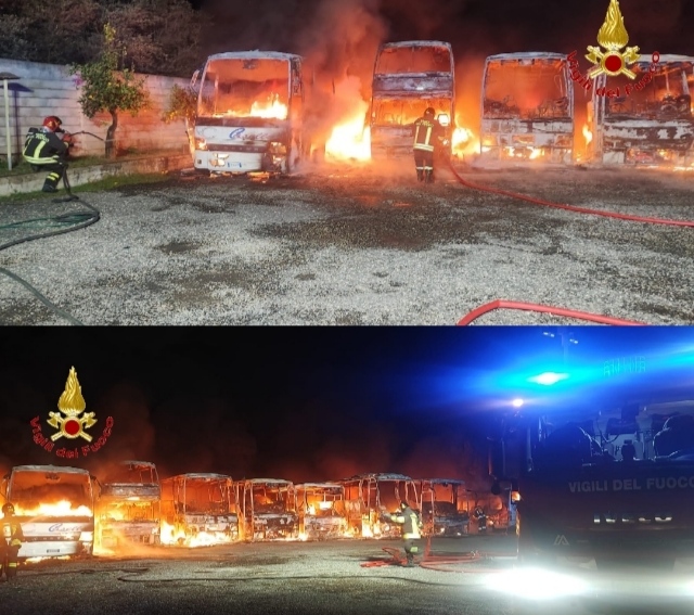 Un rogo ha infatti devastato l’area di sosta dell’azienda di trasporti Casella Noleggiobus di Ambrogio Casella. Le fiamme sono divampate nel corso della notte nella zona dove sono parcheggiati gli autobus che vengono poi noleggiati in via Rimembranza. Sul posto sono giunti i vigili del fuoco che hanno provato a domare il rogo anche se il grosso dei danni è stato impossibile da arginare.