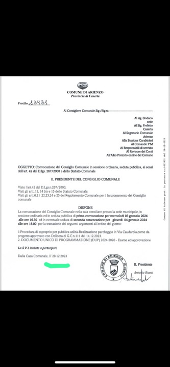 Questa la risposta del rampante Rivetti: “Convocazione regolarissima e nei tempi… Sono 7 giorni dal 28 al 4 gennaio e cinque liberi come da norma (29,30,31,1 e 2). All’interno del consiglio comunale dove vi era il numero legale non ci sono state integrazioni dei punti all’ordine del giorno, tranne che al secondo punto ma giàchiarite in sede di riunione dei capigruppo.