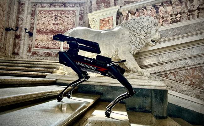 L’impiego del cane robot “Saetta”, da pochi mesi arruolato nell’Arma dei carabinieri, il cui nome rievoca il simbolo presente sulle fiancate delle gazzelle del nucleo radiomobile, con la tradizionale livrea blu e rossa, rappresenta un notevole passo avanti nell’utilizzo delle nuove tecnologie applicate ai servizi operativi. Saetta è in grado di salire e scendere le scale, aprire le porte e rimuovere gli ostacoli.
