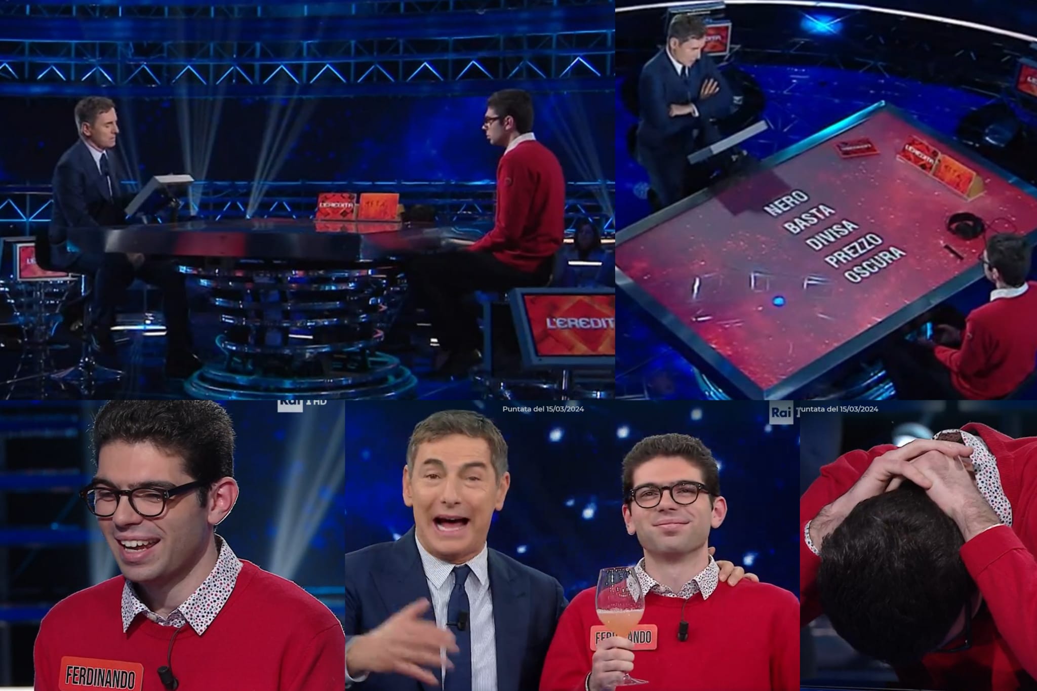 La parola ‘metà’ gli ha portato fortuna, il giovane ha anche salutato i genitori durante la fase di gioco, prima di conoscere il verdetto. Ha avuto la giusta freddezza, mostrando grande preparazione in tutti i campi.