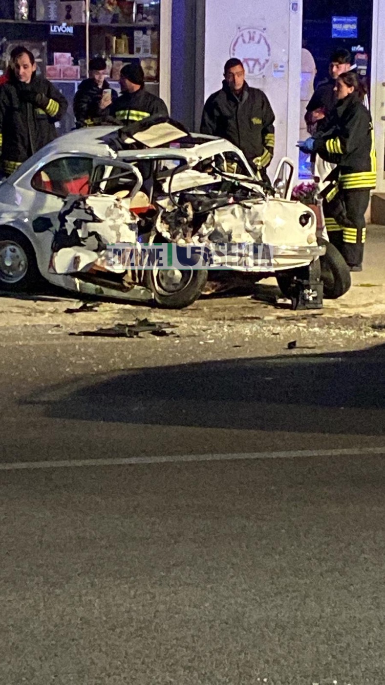 Aggiornamento 1.30. Un giovane è rimasto incastrato all’interno della piccola vettura, poi è stato estratto. Alleghiamo le foto dei soccorsi dei sanitari in gallery.