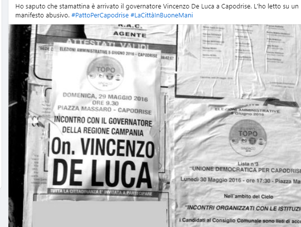 Un esempio lampante sono le elezioni del 2016, quelle delle combattute Primarie del Pd vinte da Filippo Topo su Giuseppe Fattopace ed Enrico M. Pontillo.