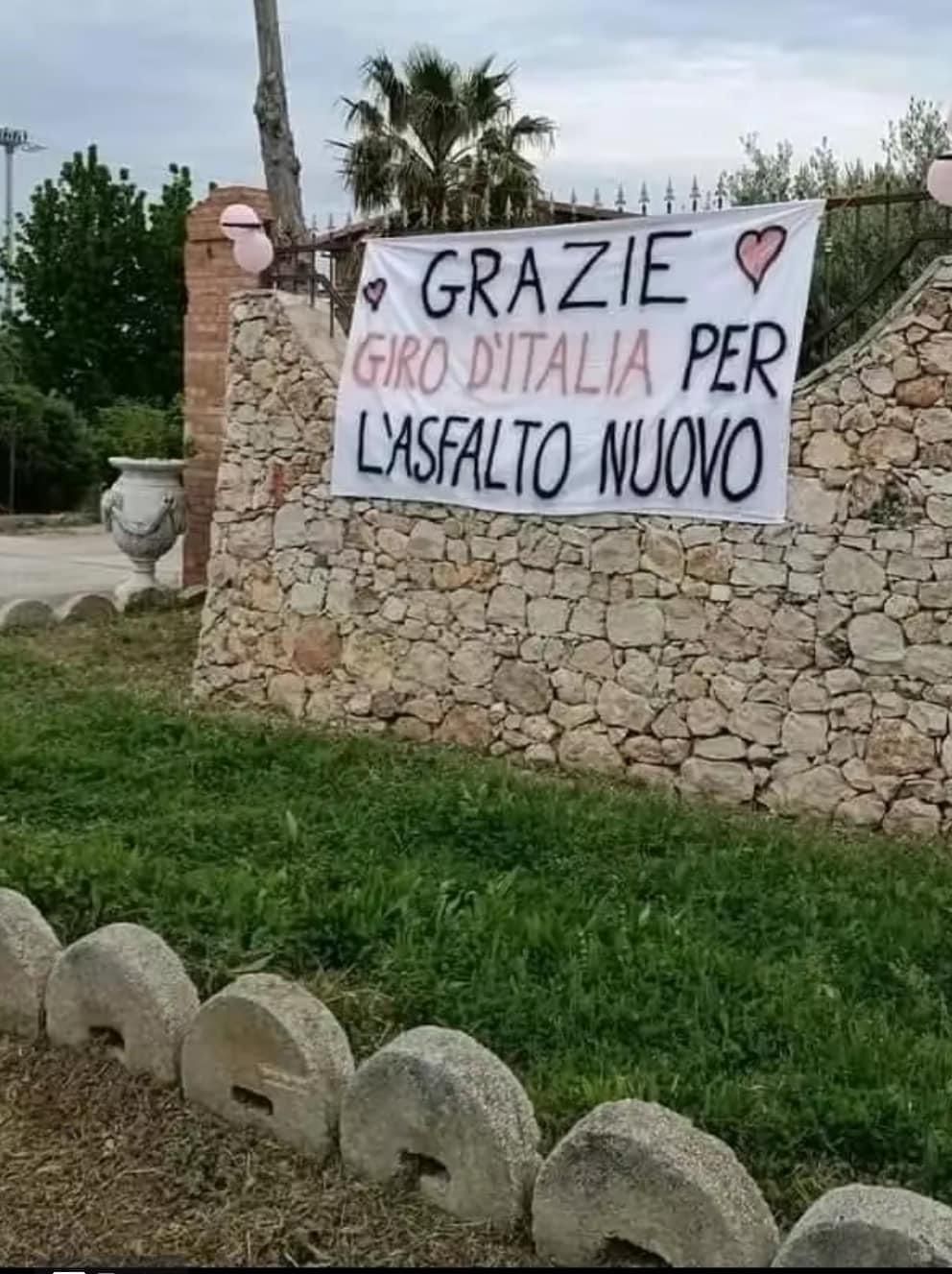 Le strade che prima presentavano buche ed erano rovinate sono state completamente riasfaltate. Qualcuno ha voluto ringraziare la carovana rosa con uno striscione dedicato: è successo nella parte sud della città. L’annuncio era però stato del sindaco Emilio Nuzzo che aveva firmato il protocollo con il presidente della Provincia (LEGGI QUI). Un mese fa.