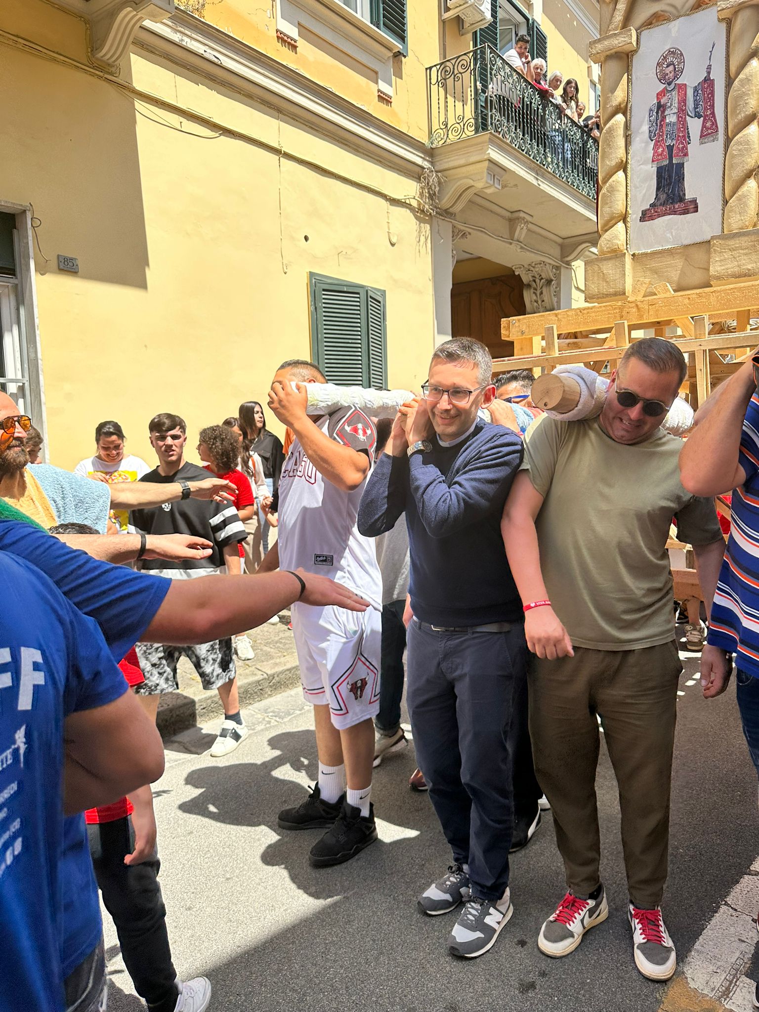 Il sacerdote della Don Antonio Coscia dopo aver dato la benedizione ai bambini ha condiviso l’emozione di condividere con i fedeli il passaggio del Giglio. Per questa giornata sono arrivate tantissime persone anche dai apesi limitrofi in attesa della grande festa del 2 giugno.