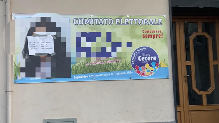 In via Dante, nei pressi della scuola, un manifesto di una candidata della lista Capodrise Insieme Popolare e Democratica è stato ufficialmente oscurato dai caschi bianchi, e quindi dovrebbe seguire anche un verbale, cosa che ci sembra giusta (foto copertina).