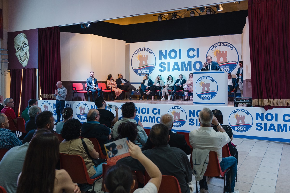 CASAPULLA. Un vero e proprio tripudio di cittadini ha accolto, ieri pomeriggio presso il Teatro Comunale di via Fermi a Casapulla, i candidati della lista ‘Noi ci Siamo’, capeggiati dall’aspirante primo cittadino Ferdinando Bosco.