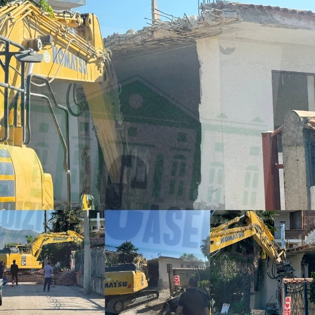 CAPODRISE. Ruspe in azione per demolire una villetta abusiva. E’ in corso l’abbattimento di un’abitazione nella disponibilità della famiglia Cuccaro.