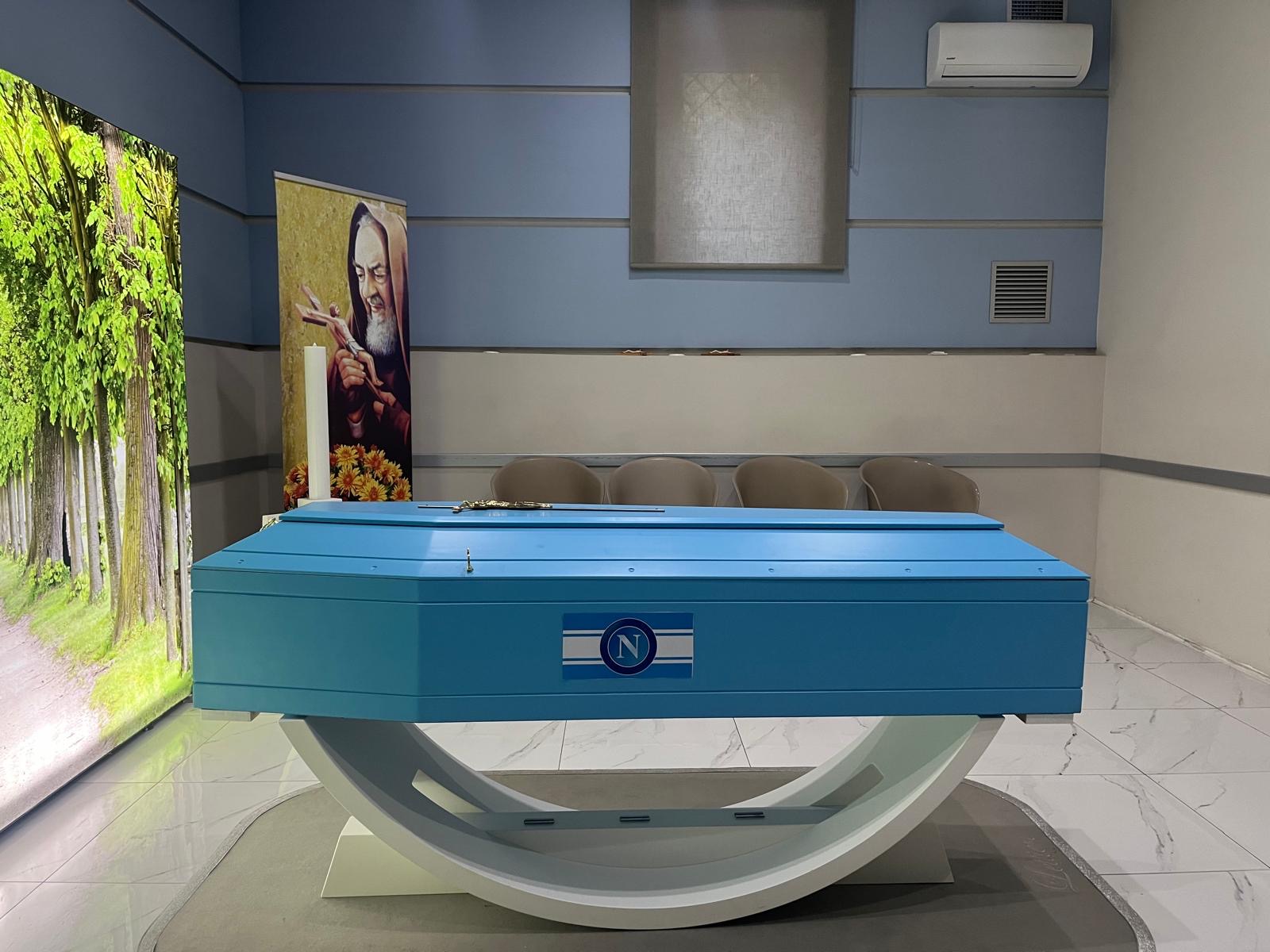 San Felice a Cancello. Una bara tutta azzurra a tema Napoli, vi mostriamo le foto di quello che è stato uno degli ultimi desideri di Paolo Houssari, il 38enne di San Felice deceduto ieri mattina all’ospedale di Caserta, in seguito a circostanze in via di definizione.