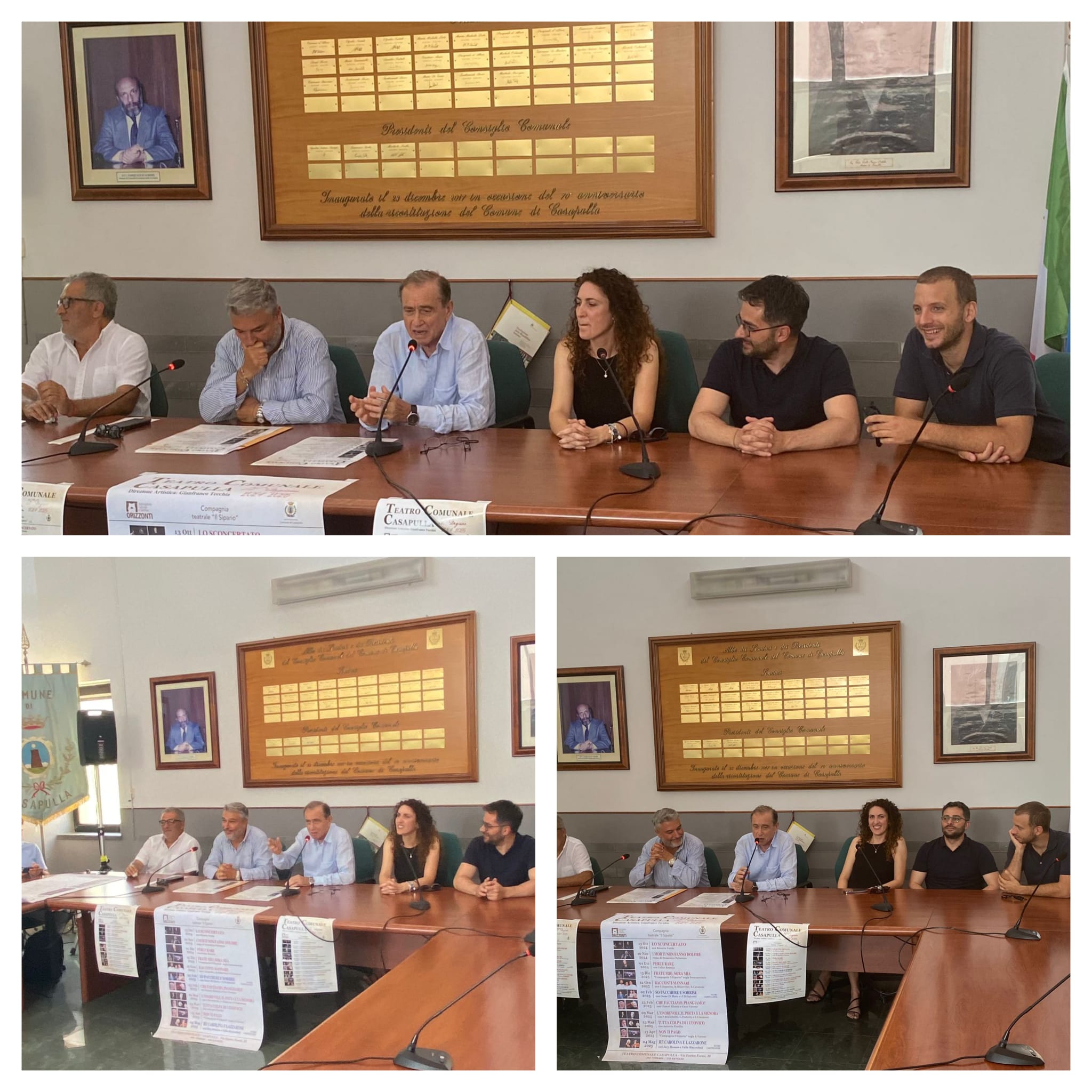 Casapulla. Questa mattina, nella sala consiliare ‘Vescovo Michele Natale’ di Piazza Municipio a Casapulla, è stato presentato il cartellone della prossima stagione teatrale, organizzata dall’associazione ‘Orizzonti’ e dalla compagnia ‘Il Sipario’.