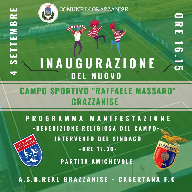 Il 4 settembre si terrà l’inaugurazione del campo sportivo “Raffaele Massaro” a Grazzanise. Al simbolico taglio del nastro e al saluto del sindaco Enrico Petrella seguirà la partita amichevole tra la squadra del Grazzanise, approdata in promozione e la Casertana. La rinascita del campo sportivo è uno dei tanti miracoli amministrativi della compagine di Enrico Petrella, un uomo di buona volontà circondato da donne e uomini di buona volontà, uniti dall’amore per il proprio paese. Il tutto nato da un finanziamento scaturito da un bando “Sport e Periferie” del 2020 a cui l’amministrazione grazzanisana ha partecipato, uscendone vincitrice. Uno dei tantissimi finanziamenti ricevuti, segno inequivocabile di un lavoro mirato, accurato, professionale che pone Grazzanise tra i primi comuni, se non il primo, tra quelli che più sono andati a segno con i propri progetti, ricevendo per questo importanti finanziamenti.