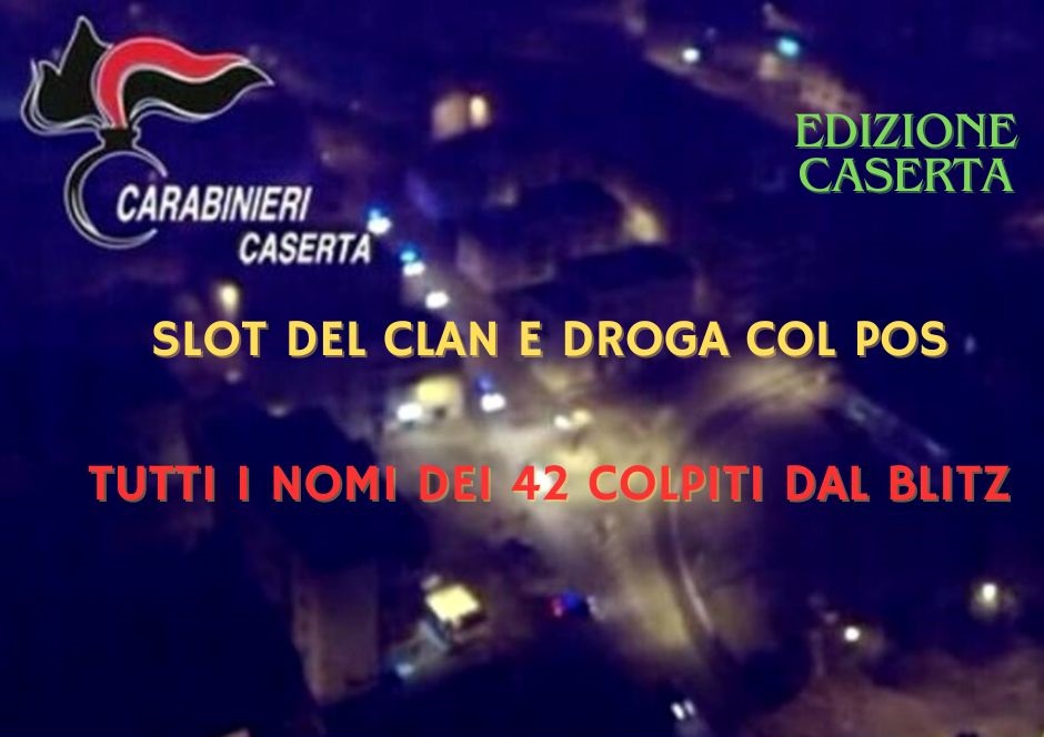 Ecco i nomi dei 42 destinatari della misura cautelare frutto dell’inchiesta di Dda e carabinieri di Caserta sul monopolio del clan dei Casalesi nei settori del gioco d’azzardo e dello spaccio.