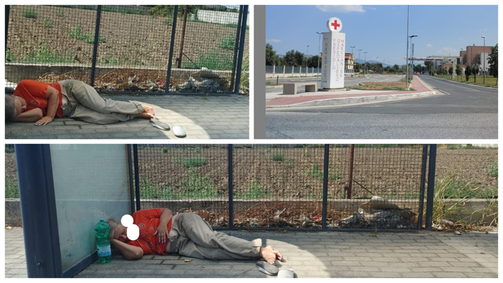 Marcianise Stesa a terra sotto la pensilina dei bus, proprio fuori l’ospedale di Marcianise a oltre trenta gradi.