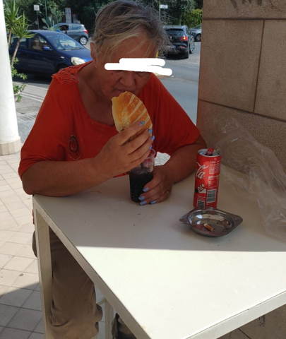 AGG. Il residente P.F., dopo averla rifocillata con acqua e cornetti ha fatto venire il 118, ma la situazione resta complicata e non sembra esserci soluzione in quanto la donna non vuole essere toccata. Quindi dopo essersi sincerati delle condizioni ha firmato liberando i sanitari da ogni responsabilità. Comunque era affamata, ha mangiato quasi un intero pacco di cornetti che il buon samaritano le aveva portato, davvero un gesto nobile.