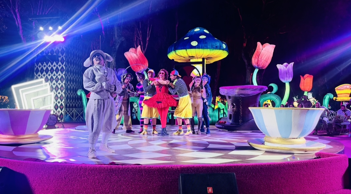 Non mancano in quest’ambientazione il labirinto di carte, l’area del tè, il mondo del Brucaliffo in cui si trova l’esclusivo Shisha Bar, le altalene del Cappellaio Matto, l’area food e gli show a tema tra musical, spettacoli di magia e teatrino dei burattini.