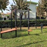 L’area, infine, per la sua posizione strategica, cioè in prossimità del percorso di running, è stata completata con delle strutture che consentono di fare fitness all’aria aperta: un urban, un double walker, un bike + step, un condition bike, un push off legs oltre ad un body tool.