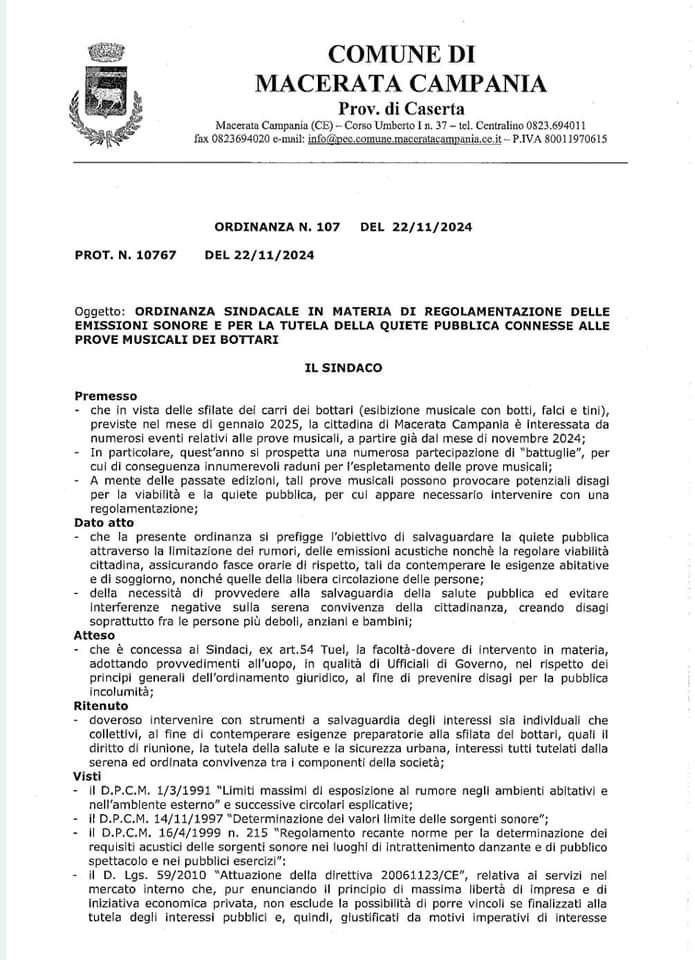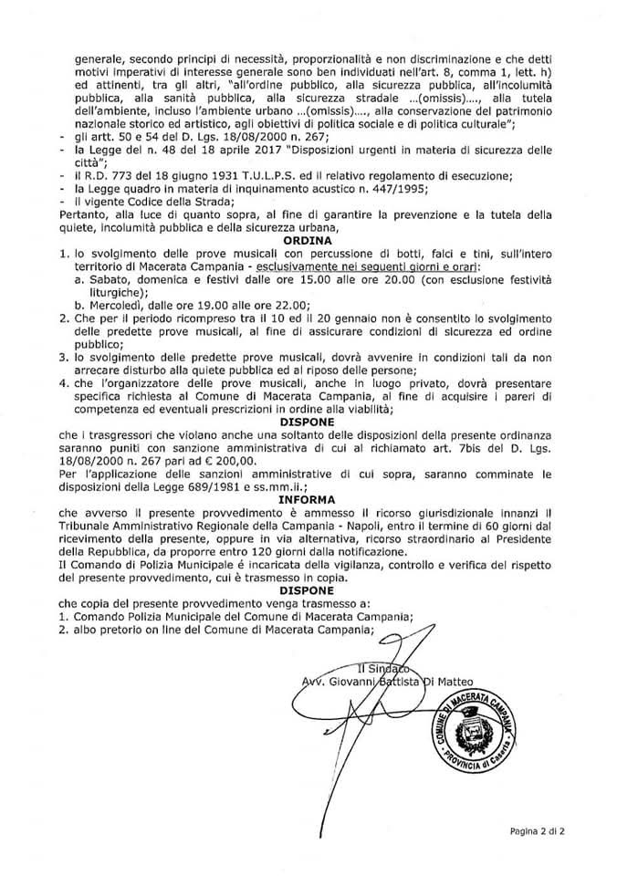 AGGIORNAMENTO. Ad ogni buon conto domani le prove non si sarebbero potute svolgere comunque per l’effetto di un’ordinanza del sindaco Di Matteo di ieri che ha escluso i giorni considerati feste liturgiche, oltre ad aver regolamentato tutta una serie di norme che dovranno seguire i bottari, che sono invitati a leggere l’ordinanza.
