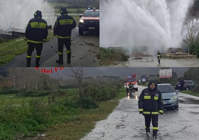 Castel Morrone. Dalle ore 12:00 di oggi, una squadra dei Vigili del Fuoco del Comando Provinciale di Caserta è intervenuta per fronteggiare una grave perdita d’acqua che ha colpito una delle principali condutture idriche della provincia, nei pressi del palazzetto dello sport del comune di Castel Morrone.