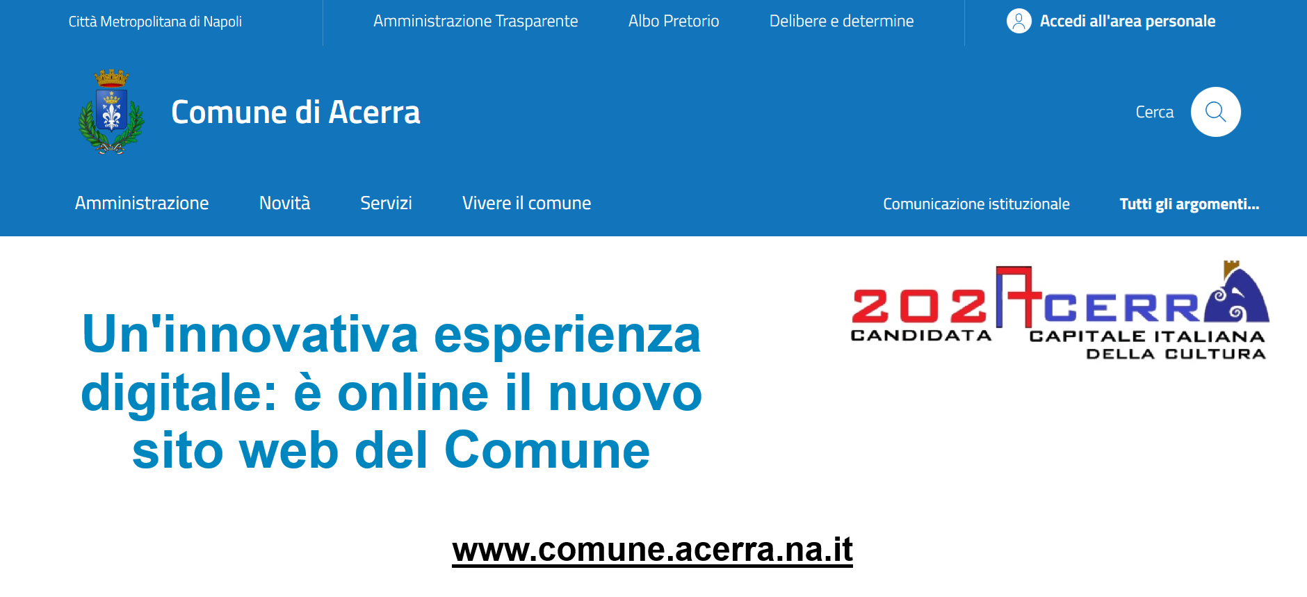 ACERRA. Molto più di un sito, ma una vera e propria innovativa esperienza digitale: è il nuovo portale web del Comune di Acerra. E’ online, infatti, il nuovo sito dell’ente, che va a sostituire quello realizzato nel 2007 e pluripremiato. Realizzato con i fondi del PNRR, l’adeguamento si è reso necessario per gli interventi richiesti dalle nuove normative in termini soprattutto di accessibilità e usabilità. Il nuovo portale web del Comune, raggiungibile allo stesso indirizzo www.comune.acerra.na.it, rappresenta un passo in avanti significativo verso una pubblica amministrazione sempre più vicina ai bisogni ed alle esigenze dei cittadini, che allo stesso tempo necessita di una dematerializzazione documentale. Il sito è facilmente utilizzabile con ogni dispositivo mobile digitale in commercio e risulta intuitivo e agevole nella navigazione e nella ricerca delle informazioni anche per le persone con disabilità, consentendo ai cittadini di accedere a una vasta gamma di informazioni aggiornate e rilevanti.