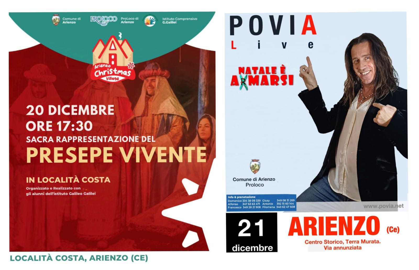 È previsto il pagamento di un ticket di ingresso. Le prossime date della programmazione ufficiale prevedono cinque giornate consecutive di intrattenimento, dal 25 al 29 dicembre, con sfilate, concerti e spettacoli inseriti in una cornice di luci e allestimenti che rendono unica l’esperienza del Villaggio natalizio di Arienzo. Da non dimenticare l’animazione per bambini al Parco Vigliotti, in una tendostruttura riscaldata pronta ad accogliere i più piccoli fino al 6 gennaio 2025. “Ci prepariamo al Natale con un calendario colmo di iniziative – ha dichiarato il sindaco Giuseppe Guida. Prima, però, torneremo a teatro con un artista di fama nazionale e assisteremo ad una delle più belle tradizioni delle feste, grazie alla partecipazione attiva degli alunni delle nostre scuole. L’invito è a non mancare”.