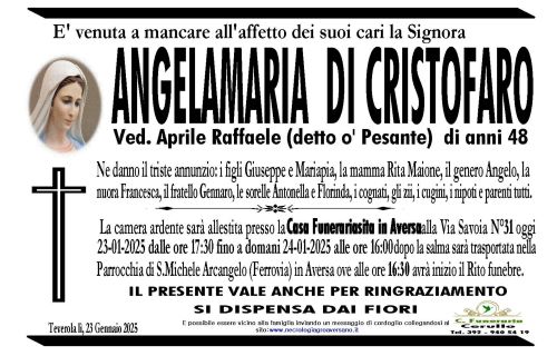 La sua salma si trova attualmente presso la Casa Funeraria in Aversa in Via Savoia e sarà lì fino alle 16, prima che il feretro parta da lì per raggiungere la Parrocchia dove il rito esequiale sarà celebrato.