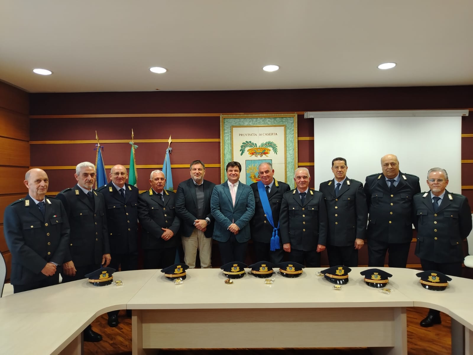 Caserta. Il presidente facente funzioni della Provincia di Caserta, Marcello De Rosa, ha consegnato oggi i nuovi distintivi di grado di Luogotenente a sette poliziotti provinciali. La cerimonia si è svolta presso la Sala Giunta della Provincia, alla presenza del comandante Mario Mennillo e del dirigente Ing. Gerardo Palmieri.